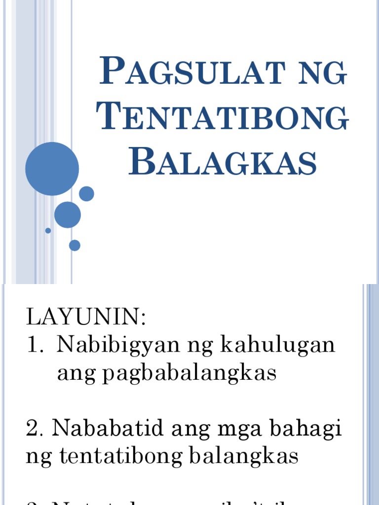 Tentatibong Balangkaspptx from ACC 2015149794 at Don Honorio Ventura Technological State University. Learn vocabulary terms and more with flashcards games and other study tools. Ano ang depenisyon ng Balangkas na Papaksa.