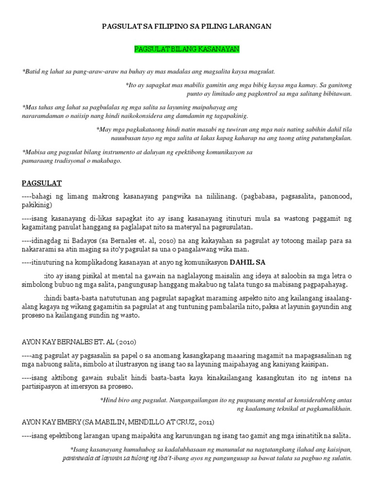 Ayon sa American Heritage Dictionary 2019 ang pagsulat ay paggamit ng isip natatangi sa bawat indibidwal kinakailangan basahin at ito ay isang proseso. Kasanayang Kritikal Nauukol sa kaayahang suriin balangkasin ihambing at ibuod at buuin ang tisis ng papel.