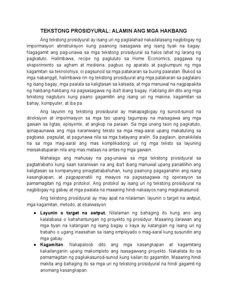 Inilalahad nito ang serye o mga hakbang sa pagbuo ng isang gawain upang matamo ang inaasahan. Tekstong Argumentatibo Sigaw ng Sambayanan. Jade Parochelin April Grace Padilla Jessa Mae Padilla Christian Dale Parcia Romalen Paniza.