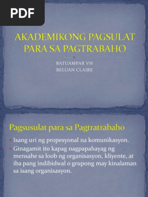 Akademikong Pagsulat Para Sa Pagtrabaho Pdf