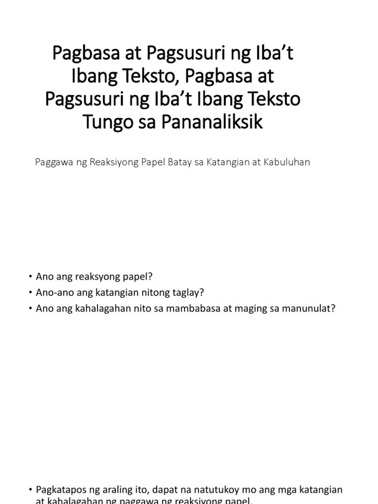 Paggawa Ng Reaksiyong Papel Batay Sa Katangian At Kabuluhan Pdf
