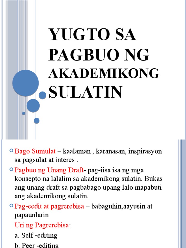 Yugto Sa Pagbuo Ng Akademikong Sulatin Pdf