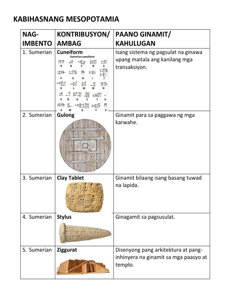 May sistema ng pagsulat upang magamit sa kalakalan at sa iba pang bagay. Kabihasnan ng mesoamerica MESO-america Ilan sa kilalang mga sibilisasyon dito ay ang Olmec Inca Aztec at Maya. Mga sistemang politikal Balikan Hindi ba ang saya malaman ang mga ambag ng kabihasnang Mesopotamia at Indus.