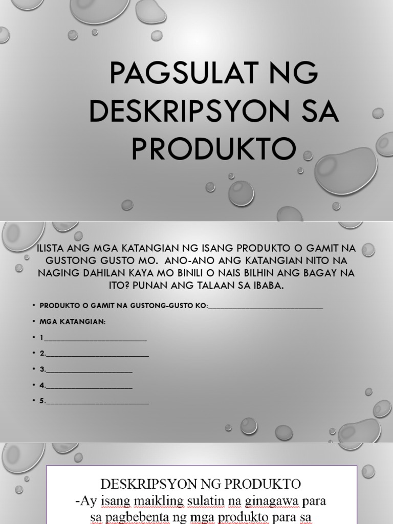 Deskripsiyon Ng Produkto Mel Pdf