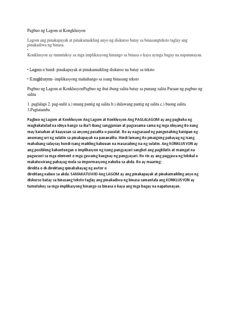 Pagbuo Ng Lagom At Konklusyon Pdf