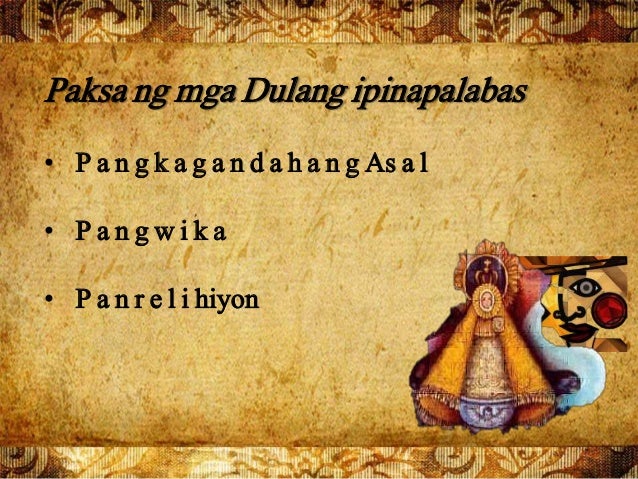 Nakapokus sa lipunan o ugnayang-panlipunan at ng. Ito ay naglalarawan ng mga katutubong tagpuan kahusayan sa pagpapatawa at nagtampok na mga. Maidaragdag din sa mga sangkap ng dula ang set kostyum make-up lighting at stage directionNgunit dapat tandaang hindi sapat na alam lang ng manunulat ang mga sangkap sa pagsulat ng dulang iisahing yugto.